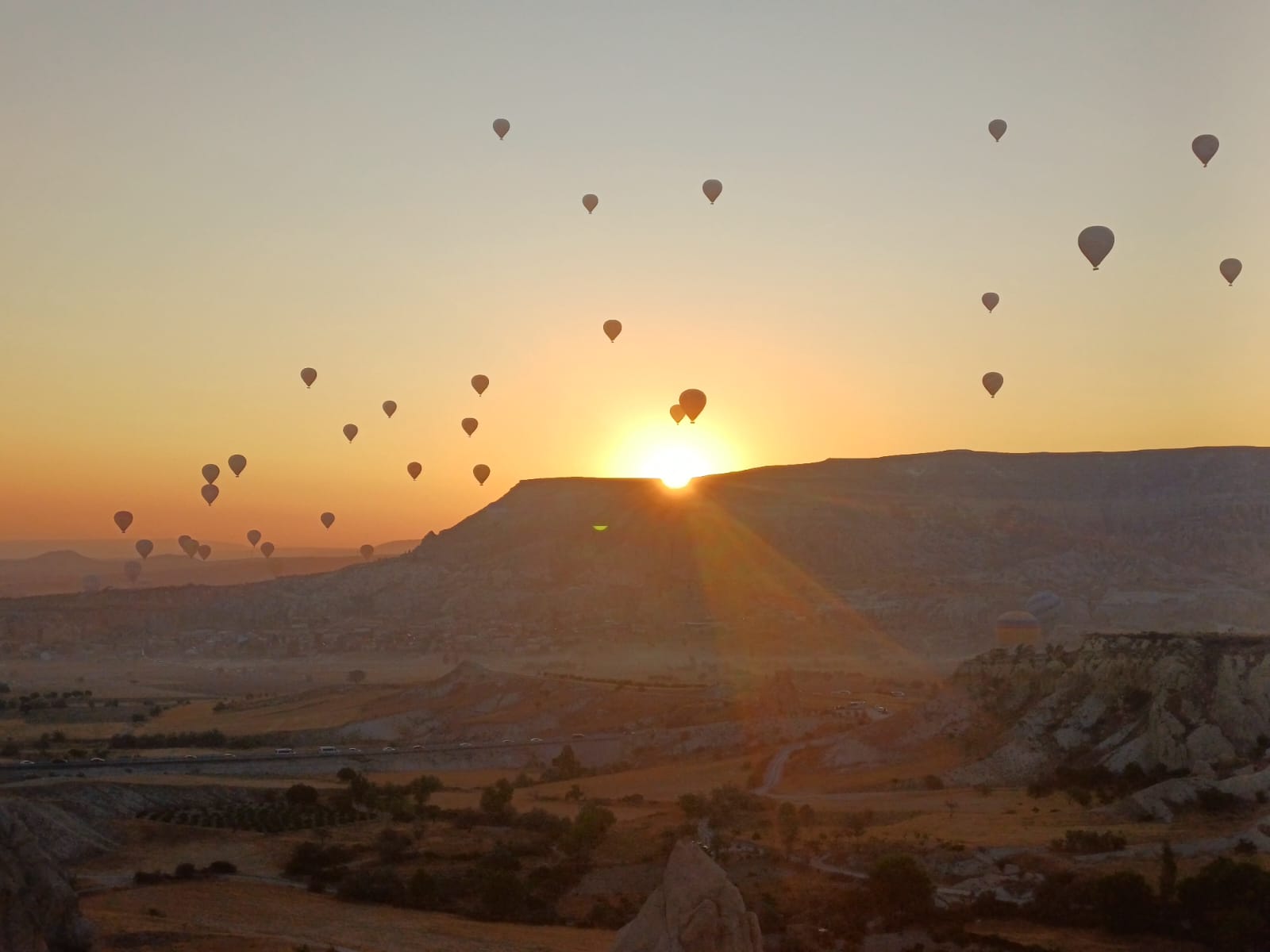 🌄📸☕ Gün doğumunun ardından Göreme Panorama seyir noktasına geçilerek, bir yandan festival dolayısıyla hepsi birbirinden güzel ve özel sıcak hava balonlarını, diğer yandan Göreme’nin panoramik manzarasını geniş bir perspektiften izleme fırsatı yakalandı. Kısa bir serbest zaman dilimi içerisinde fotoğraf ve dinlenme molası verildi. Takiben araçlara intikal edilerek Nevşehir şehir merkezinde kahvaltı molası gerçekleştirildi. Burada grubun enerji ve motivasyonunu artıracak şekilde zaman planlaması yapıldı; dönüş yolculuğu öncesi ihtiyaçlar giderildi.