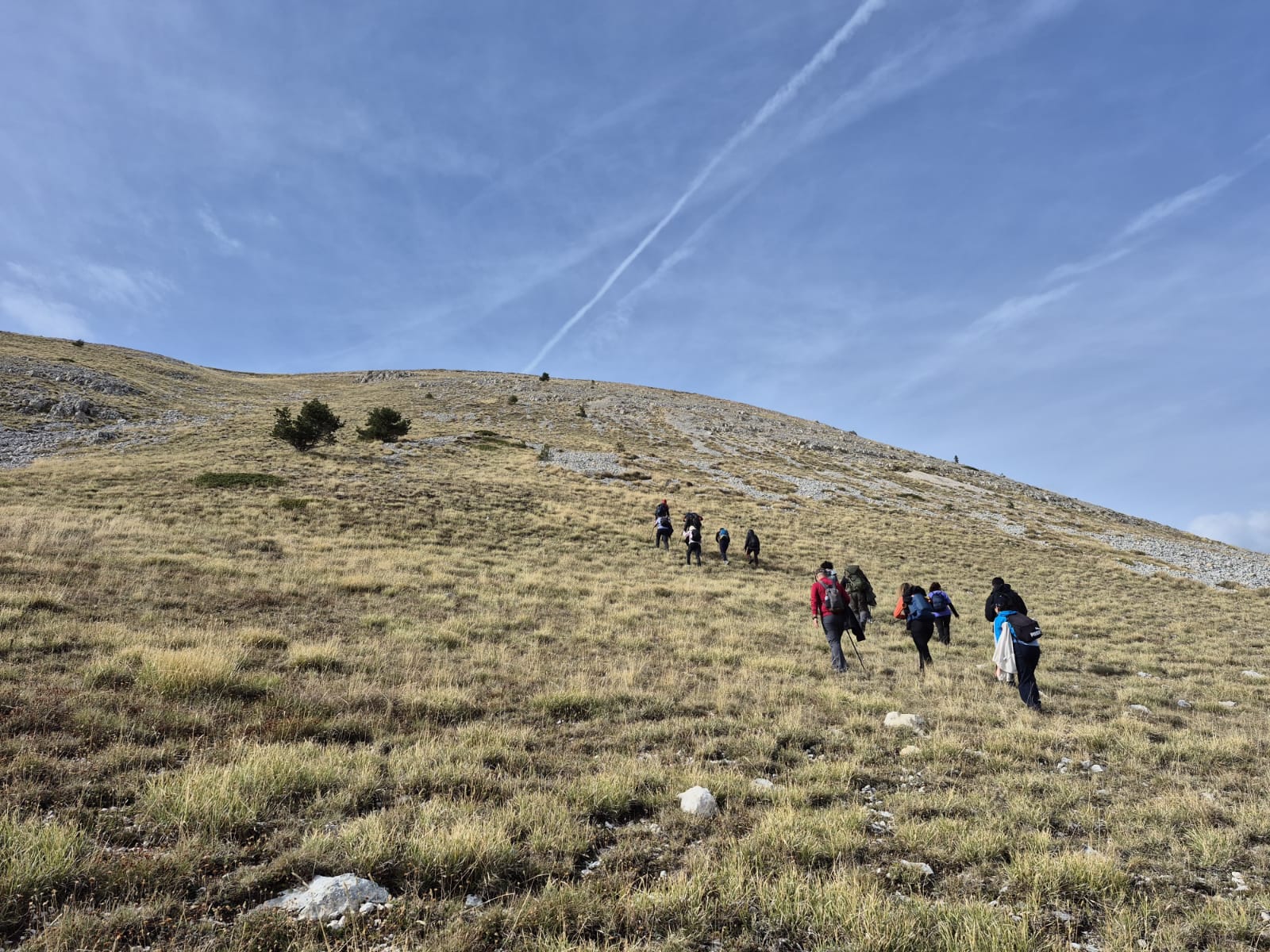 Zirvede, 2.587 metrelik yüksekliğin getirdiği açıklık hissi ve rüzgârla birlikte, rotanın geride kalan bölümüne dönüp baktığımızda çizdiğimiz hattın netliği yüzlere yansıyan bir memnuniyete dönüştü. Geniş ufuk çizgisinde, kuzeyin sık ormanları ve güneyin dalgalı platosu iki farklı coğrafi karakteri tek bir manzarada birleştiriyordu. Kısa bir mola boyunca, grup olarak hem manzaranın hem de başarının tadını çıkardık; dayanışma, uyum ve temkinli ilerlemenin bizi buraya taşıdığını bilerek.
