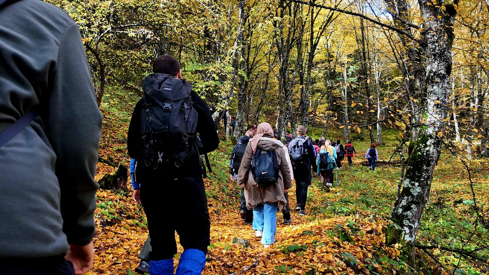 Sabah saatlerinde başlayan yürüyüş, nemli toprak ve yağmur sonrası canlanmış orman ekosistemi içerisinde ilerledi. Rotanın ilk bölümleri yer yer dik sayılabilecek kısa eğimlerle başlarken, orman örtüsü yoğunlaştıkça çam ağaçlarının reçine kokusu ve kayın yapraklarının sarıdan kızıla dönen tonları eşsiz bir atmosfer yarattı. Bir gün öncesinde etkili olan yağış, doğaya tazelik kazandırmış; bu sayede yol boyunca çeşitli mantar türleri ve kış mevsiminin habercisi olan mor ve beyaz tonlardaki çiğdem çiçekleri gözlemlenmiştir.